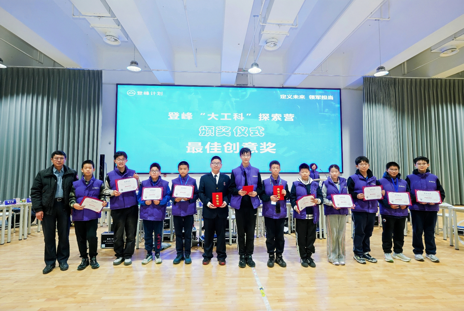 清华大学教授、登峰研究院执行院长、登峰“大工科”探索营总设计师白峰衫教授为获奖同学颁奖